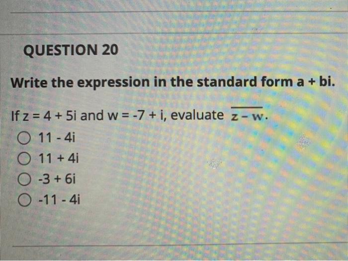 Solved Question 20 Write The Expression In The Standard Form Chegg Com